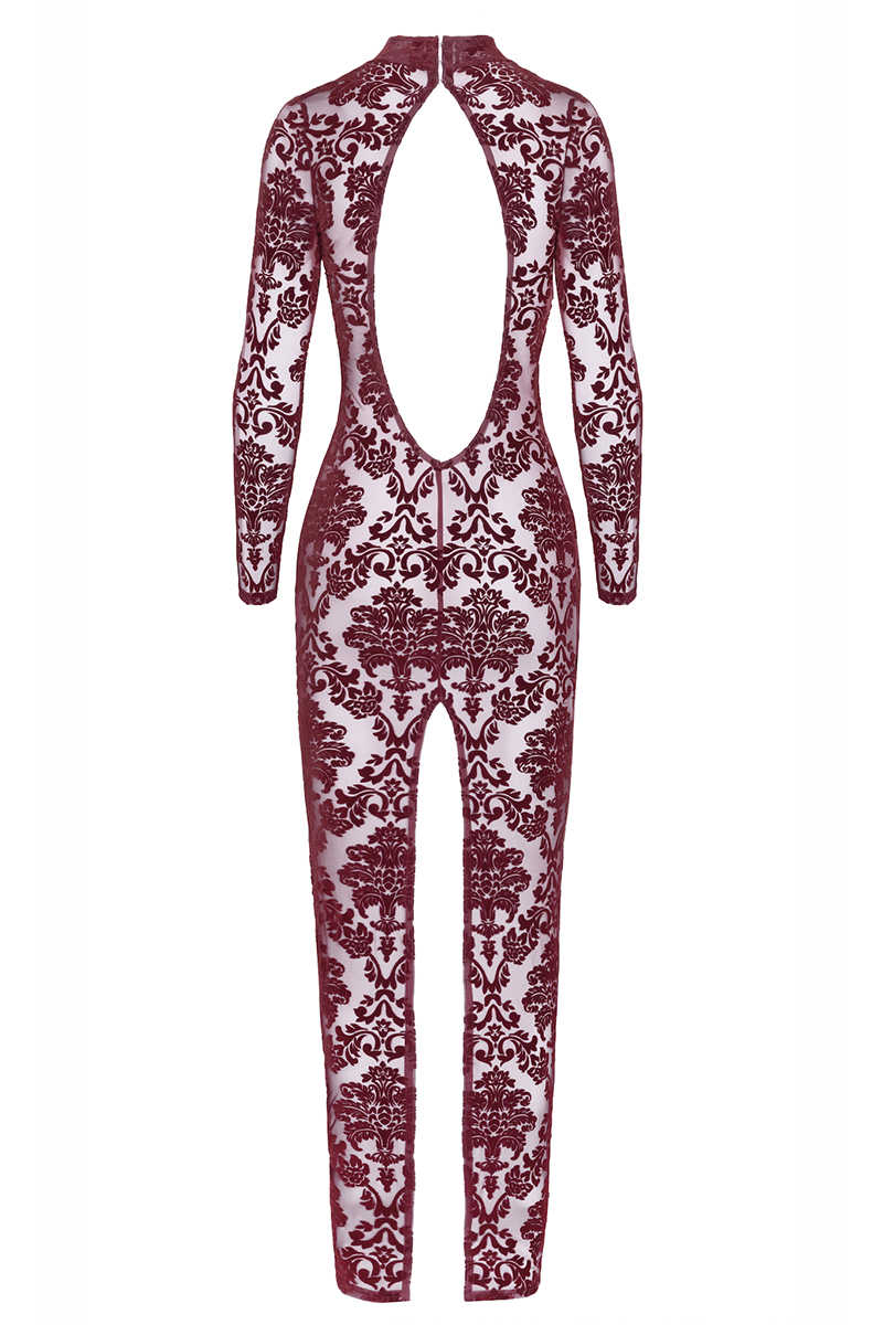 Testez votre pouvoir de séduction avec cette magnifique robe longue bordeaux transparente !