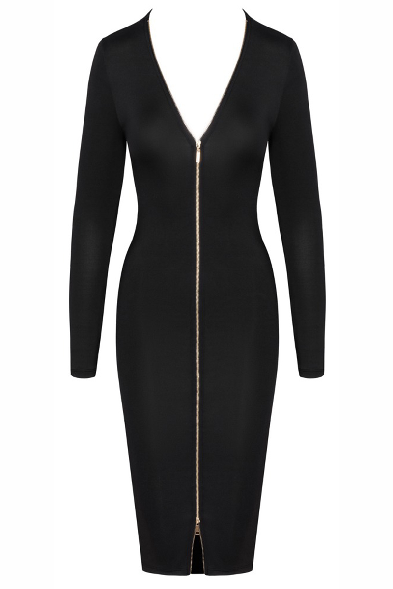 Cette robe noire à manches longues de la marque Cottelli Party est proposée dans une coupe cintrée et une longueur midi.