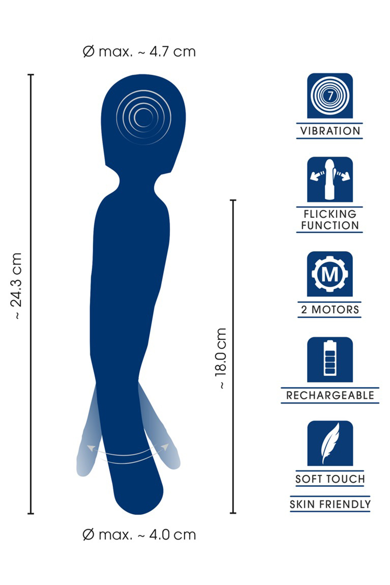 Conçue en silicone avec une surface soyeuse, le sextoy glisse comme par magie sur la peau. La tige s’insère facilement, la tête de massage flexible caresse chaque zone du corps et de l’intimité. Un confort exclusif pour un maximum de plaisir !